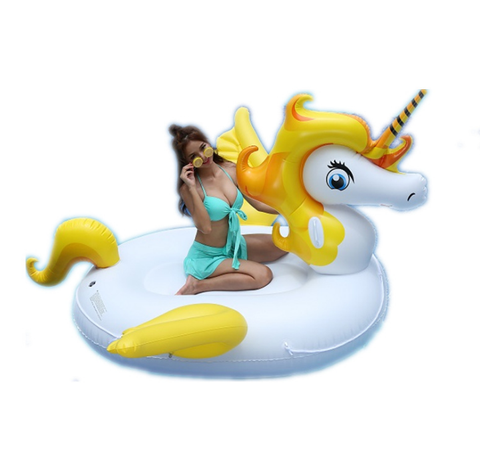 2021 Nieuwe Grote Eenhoorn Mounts Gele Regenboog Vliegende Paarden Zwembad Drijven Pvc Opblaasbare Drijvende Afvoeren Zwembadvlotter