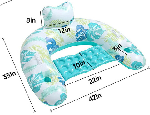 Cadeiras flutuantes para adultos com encosto e copo Piscina inflável Float Lounger